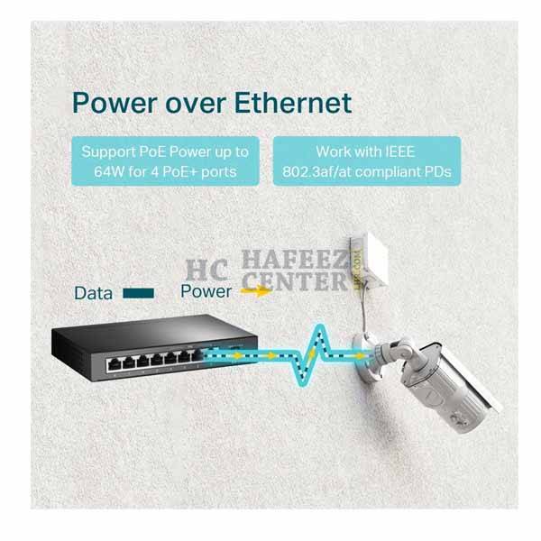 Compliance with the 802.3af/at PoE+ standard supports up to 30 W on each PoE port. The total 66 W PoE power budget* for the 4× PoE ports opens up a wide range of applications, such as surveillance for offices, dormitories, and small businesses. It is fully compatible with IP cameras, access points, IP phones, computers, printers, and more.
